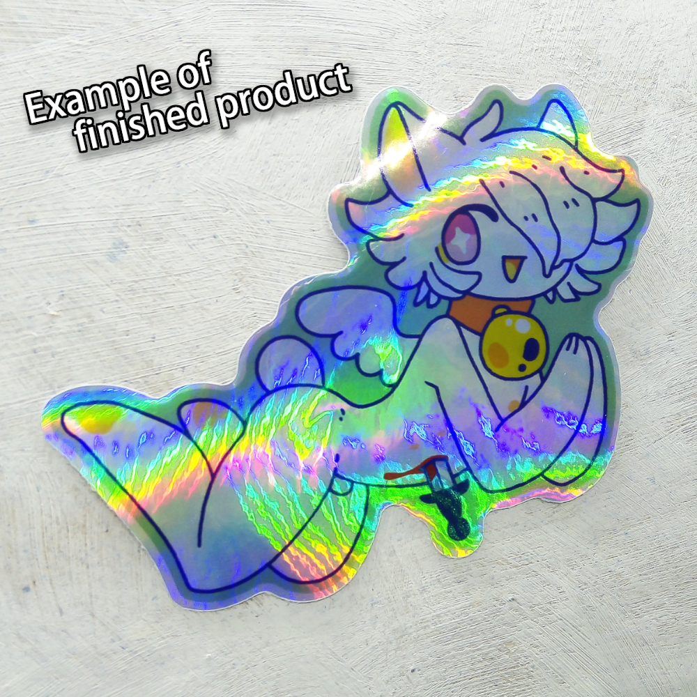 A holo vinyl sticker by Sulo! Bleh bleh. Suitable for indoor and outdoor use with up to 4 years of outdoor durability.