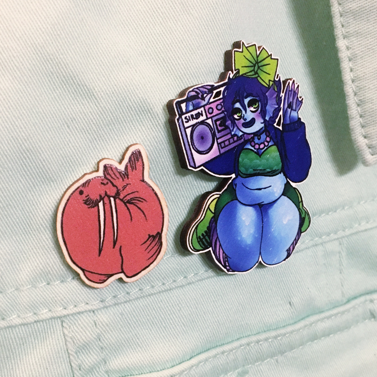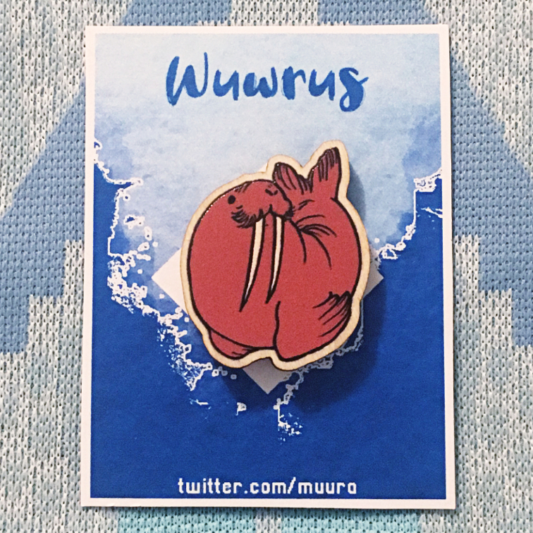 A wooden pin by Muura! A powerful walrus with a thick, round body. Printed on 3mm thick plywood. Has a silver pin with a butterfly clutch.