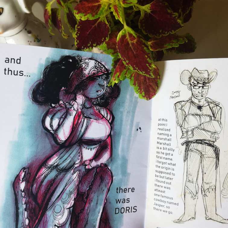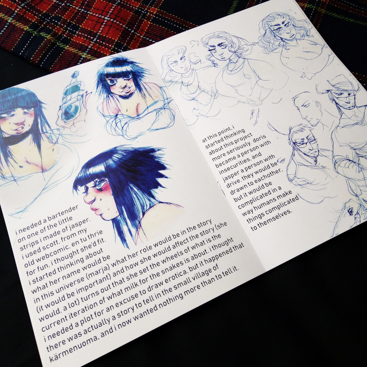 A 32-page hype booklet about Muura's new webcomic, Milk for the Snakes! Full color, A5 size. Features information about the characters and the world they live in, concept art, sketches, and the first eight pages of the comic.