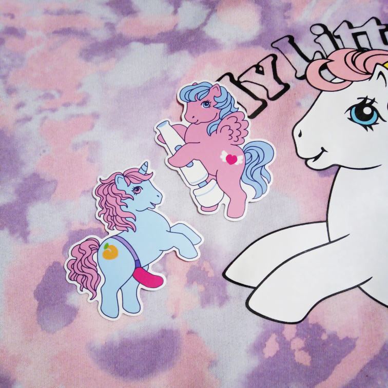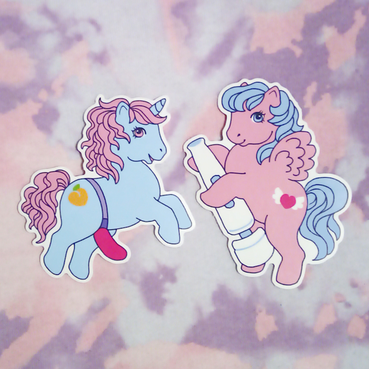 Matte vinyl stickers by Sulo! Playful ponies inspired by '80s My Little Pony toys and the way their plastic smells. Suitable for indoor and outdoor use with up to 4 years of outdoor durability.