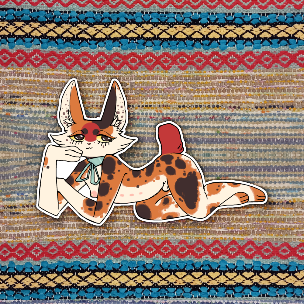 A semi-gloss vinyl sticker by Sulo! Dandy lounging. Suitable for indoor and outdoor use with up to 4 years of outdoor durability.